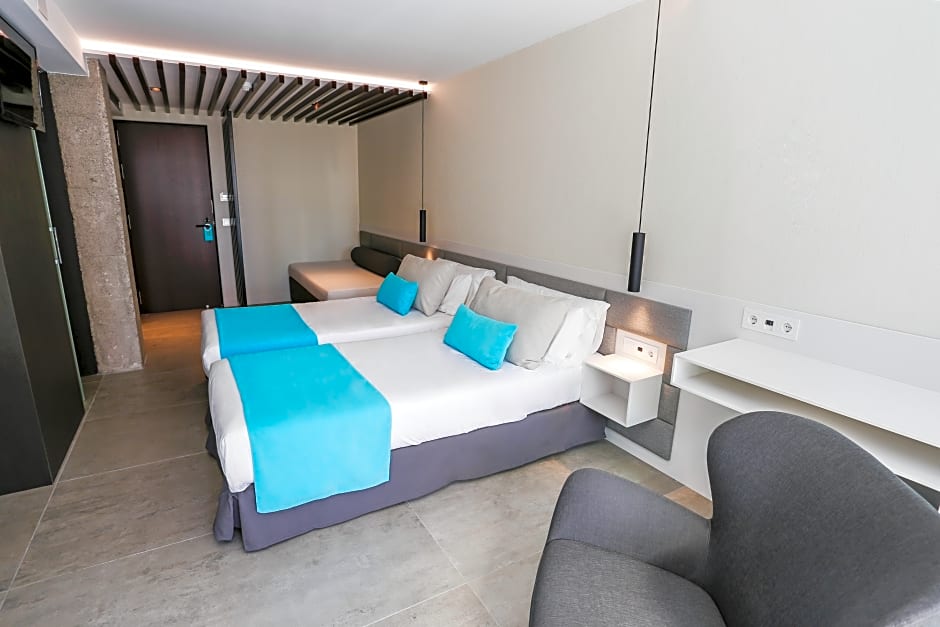 Overlooking the hotel's swimming pool and decorated in light colors, all of them have large windows and lots of natural light. They have a large furnished balcony. Equipped with 2 twin beds or 1 queen size bed, a reading or resting area with a chair and coffee table and semi-open concept bathroom area with a large rain effect shower, magnifying mirror, hairdryer and welcome amenities. All of them have lighting control and curtains with home automation system.